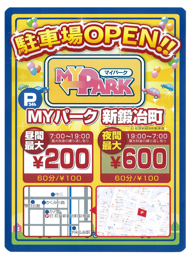 10/19 AM11:00 MYパーク新鍛冶町 オープン!(旧紅屋新鍛冶町駐車場)