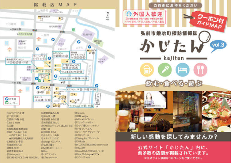 弘前市鍛冶町探訪情報誌かじたんvol.3発行2018/11/02 更新 弘前市鍛冶町情報誌かじたんvol3設置のご案内 3月1日新刊発行致しました。お近くの設置店で、ぜひ手に取って頂き ご活用ください。 設置店情報はこちらから