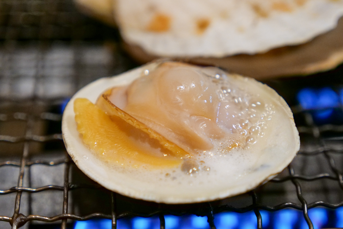 メインの白ハマグリにホタテ、牡蠣をのせたら貝が開くまでしばし待つ。磯の匂いが食欲をそそり、パカっと開いたら食べ頃です。