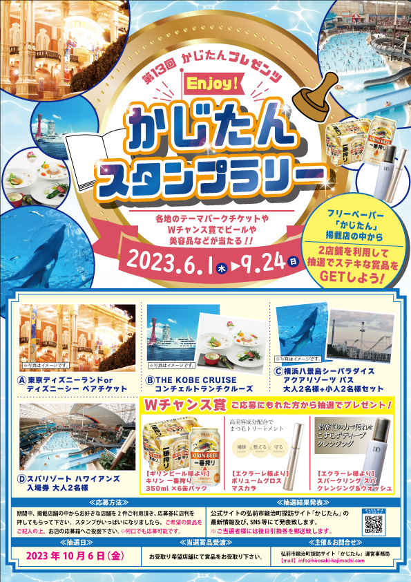 豪華賞品の数々でお送りする「かじたんスタンプラリー」が6/1~9/24の期間で開催いたしますよーーーー(/・ω・)/