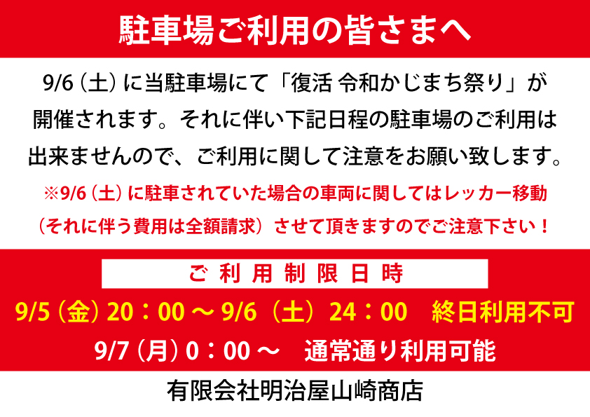 9月5日(金)の夜8時〜9月6日(土)終日はご利用頂けませんので何卒ご了承下さいますようお願い致します
