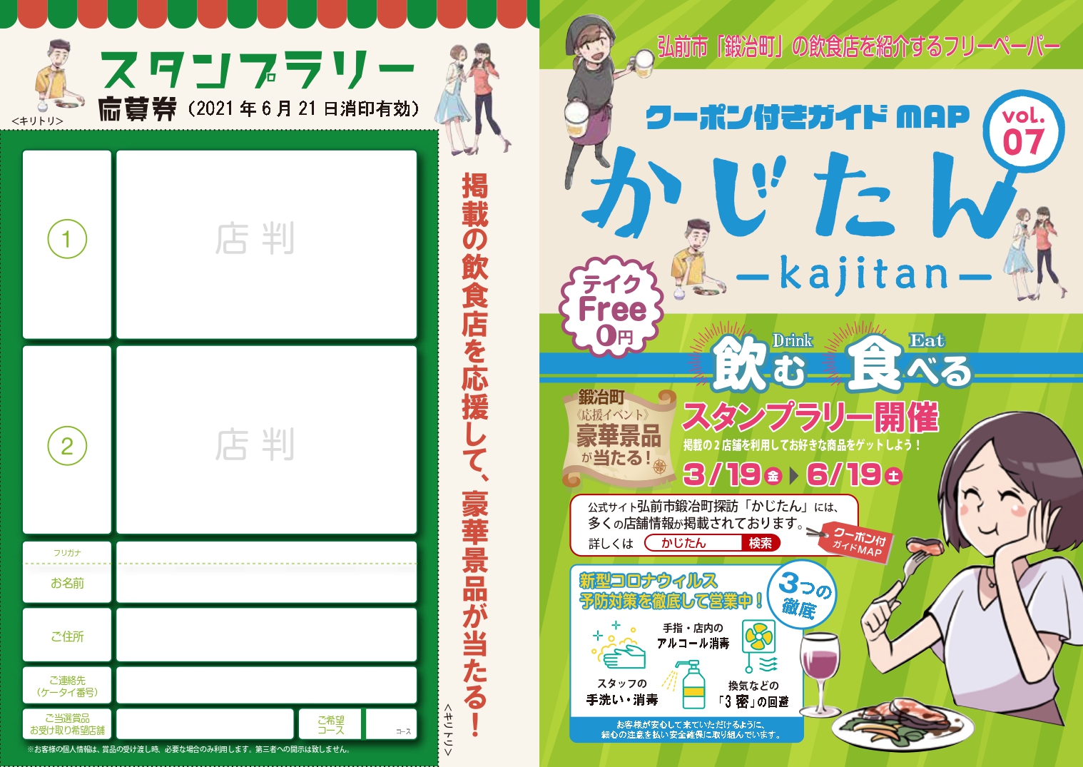 ※画像をクリックすると全ページのデータが見れます 3月19日~かじたん情報誌No.7の新刊が発行になります。今回もお薦めのお店をご紹介致しますので楽しみににしてください! スタンプラリ... 続きを読む